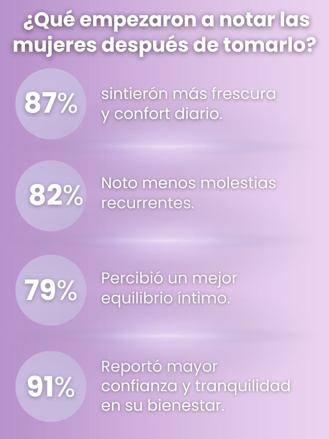 Muchas mujeres reportan alivio del picor e incomodidad en pocos días, aunque cada cuerpo es distinto. Lo importante es usarlo de forma constante para mantener frescura, equilibrio del pH y protección natural.