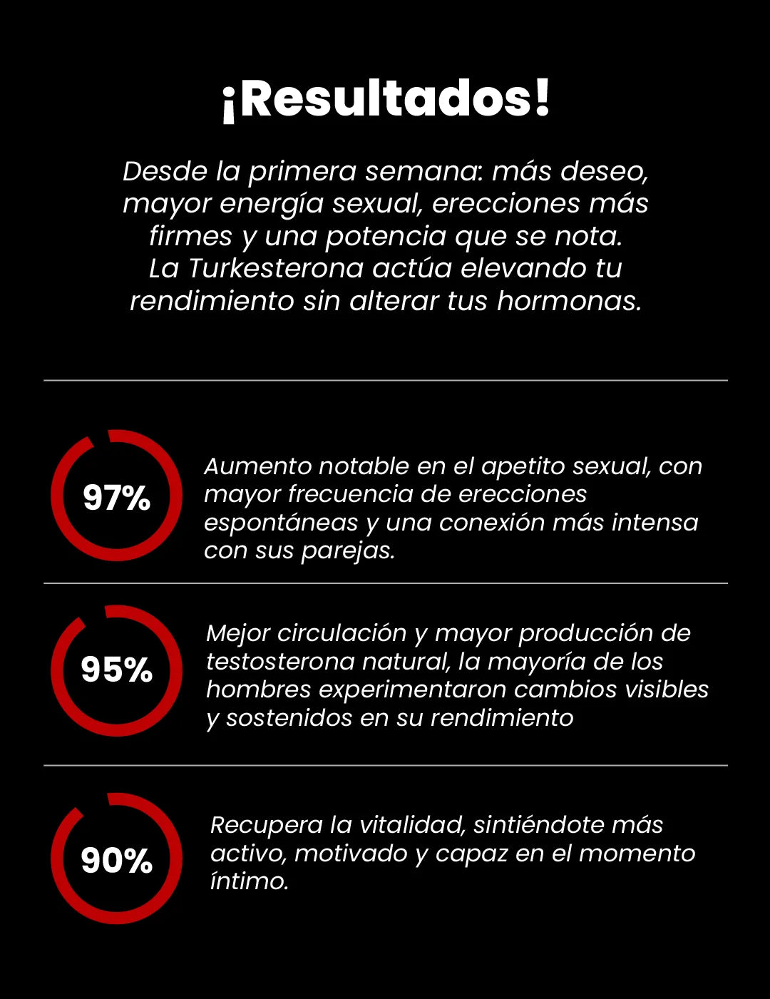 Para nada. la Turkesterona™ está diseñada tanto para quienes entrenan como para hombres que buscan más energía, mejor concentración, mejor humor y un impulso en su vida íntima, sin necesidad de rutinas intensas.